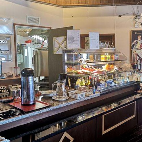 Päärakennuksen aukioloaikana kahviosta on saatavilla aina pikkupurtavaa ja juotavaa. Suolaisen nälkään löytyy mm. hampurilaisia ja ranskalaisia. Meillä on A-oikeudet.