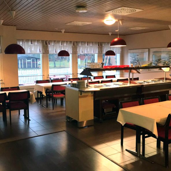 Kesäisin joka päivä seisova aamupalapöytä sekä lounaspöytä. Talvella varauksella aamupala majoittujille.