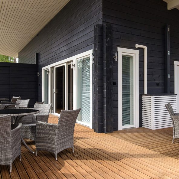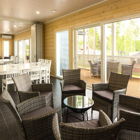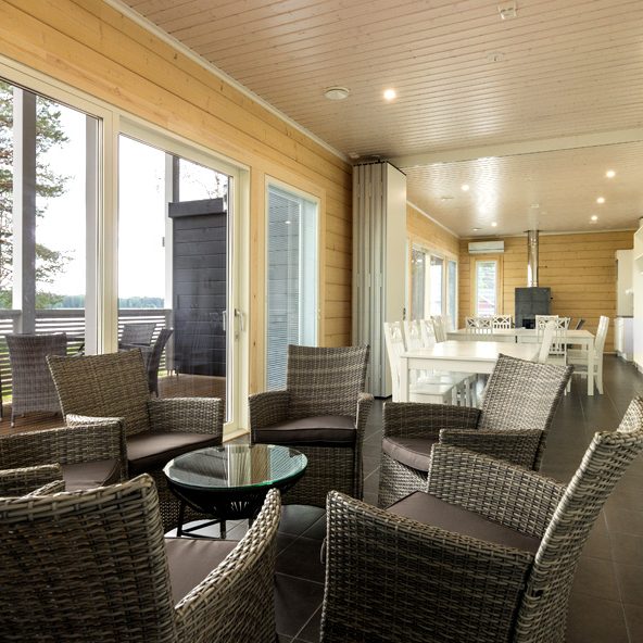 Iso katettu terassi mahdollistaa suurienkin ryhmien kokoontumiset kesäaikana.
