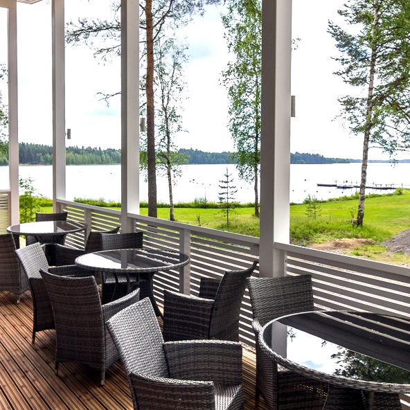 Saunamaailma sijaitsee ison hiekkarannan lähituntumassa ja ulkoterassilta on upea näkymä järvelle päin. Terassilta pääsee suoraan ulkoporealtaaseen.